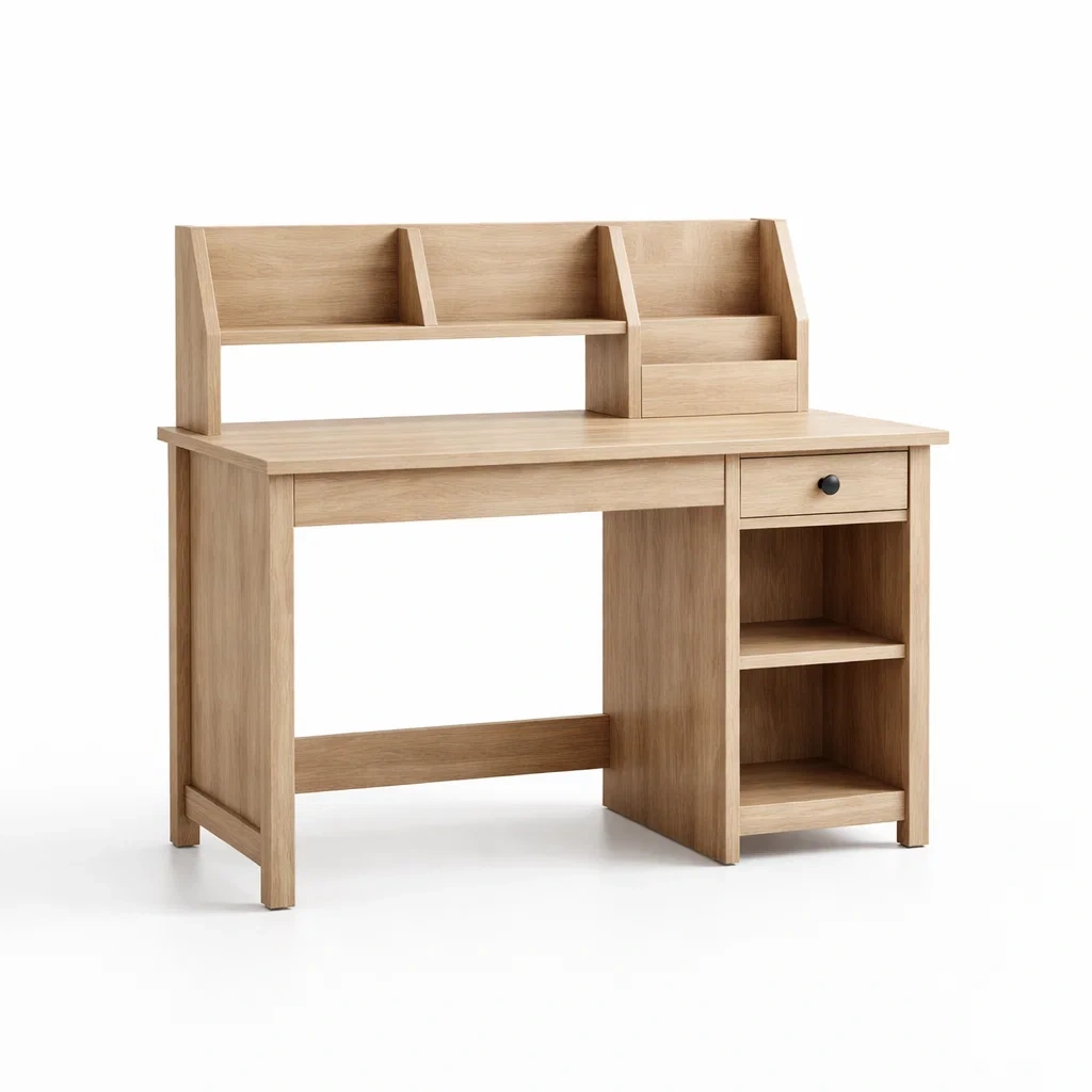 Scrivania in legno massello con mensole e cassetti