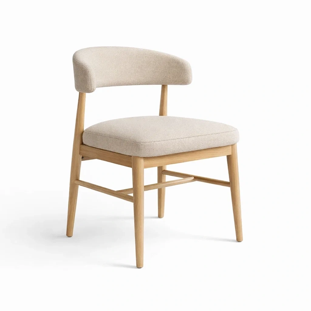 Sedia da pranzo in tessuto beige con gambe in legno
