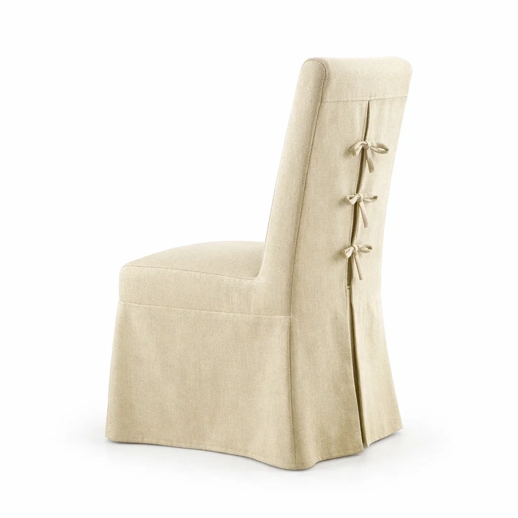 Sedia da pranzo in tessuto sintetico beige con fiocchi decorativi