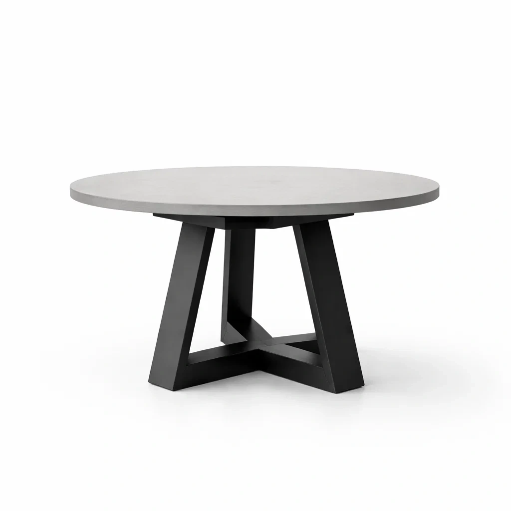 Tavolo rotondo in cemento con gambe in metallo nero
