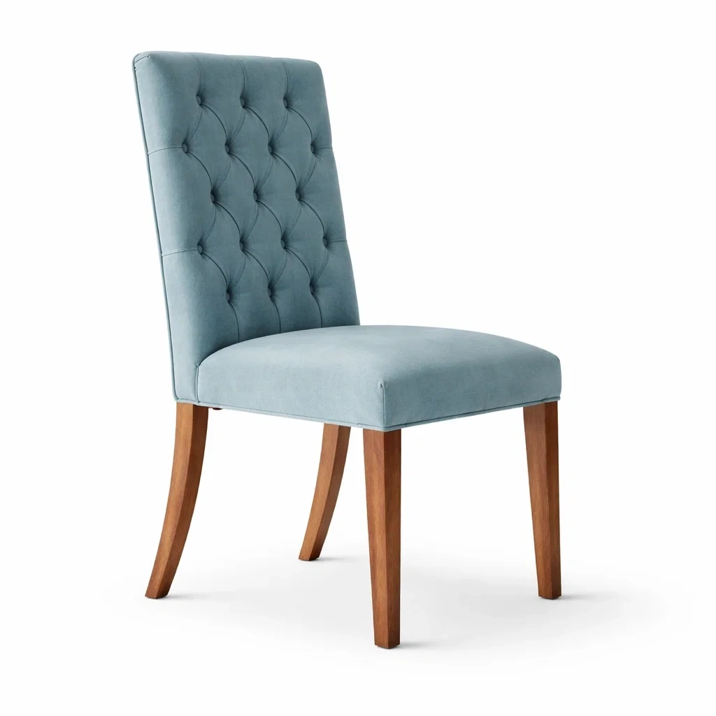 Sedia da pranzo imbottita con schienale trapuntato in velluto blu e struttura in legno 95x45x60 cm
