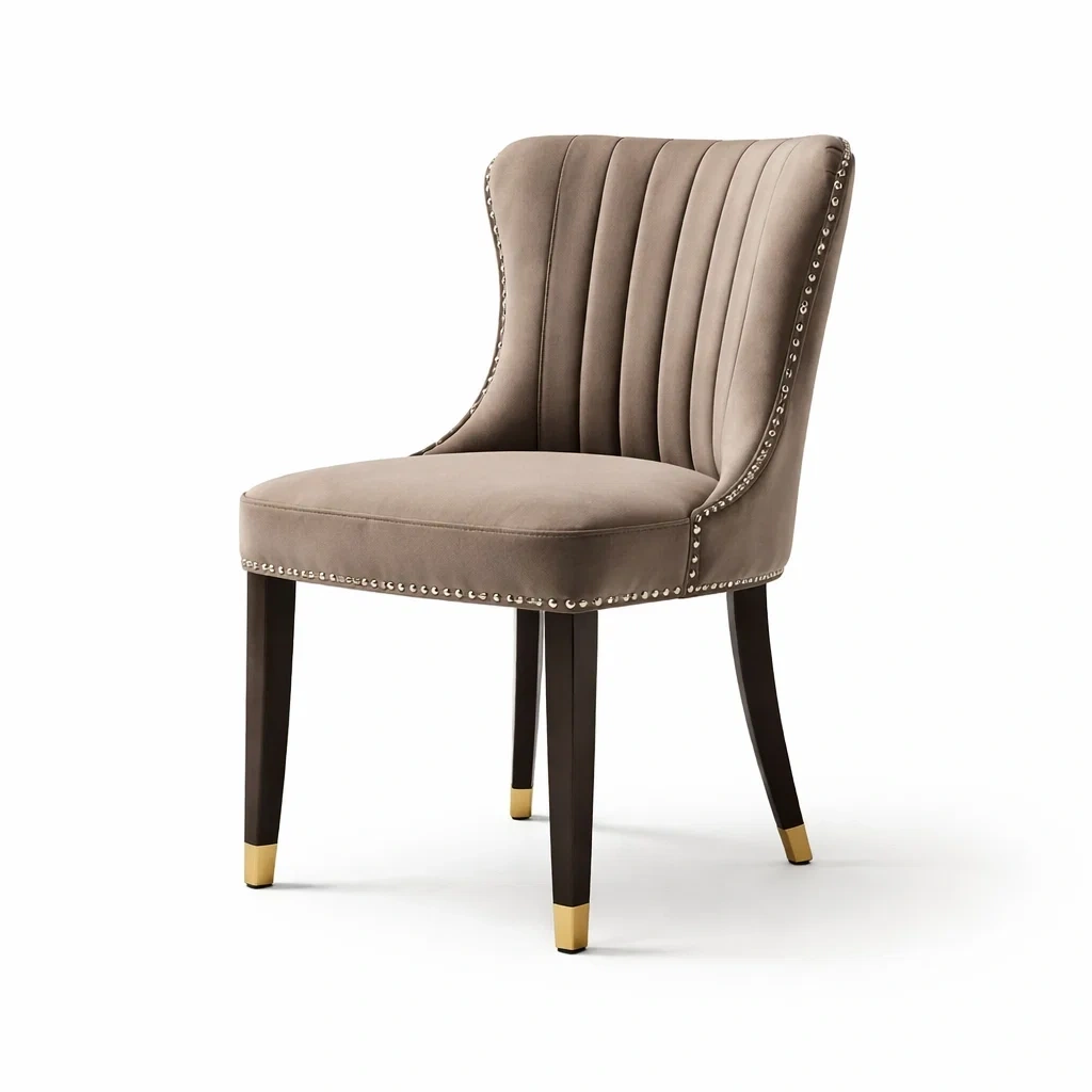 Altre caratteristiche: Altezza seduta 48 cm; dettagli di design con borchie metalliche; gambe in legno massello con finitura metallica; manutenzione consigliata: pulire con un panno umido ed evitare detergenti aggressivi