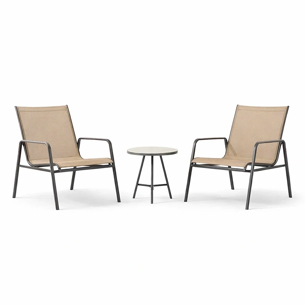 Materiale:Sedie con struttura in metallo verniciato a polvere e rivestimento in textilene;tavolino con struttura e piano in metallo verniciato a polvere