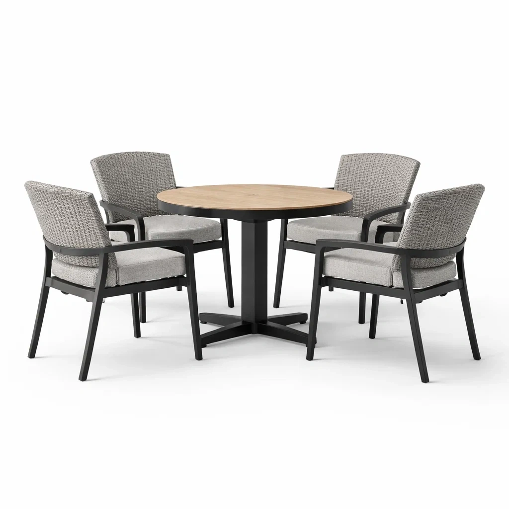 Altre caratteristiche: Set composto da 1 tavolo rotondo e 4 sedie; adatto per uso esterno; manutenzione consigliata: pulire con un panno umido ed evitare l’esposizione prolungata al sole