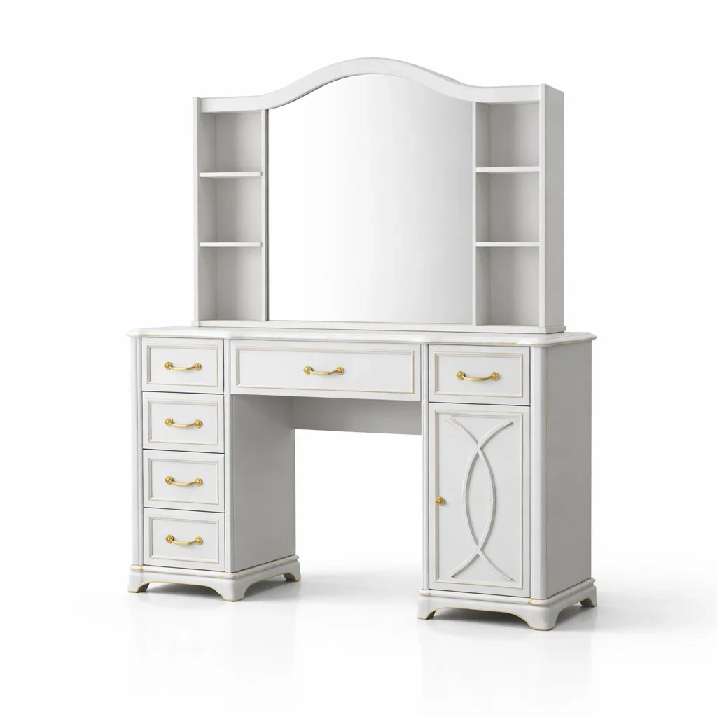 Funzionalità: Ampio specchio centrale, 7 cassetti, 4 ripiani aperti